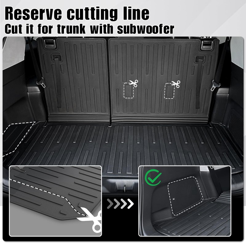 - Custom Fit: The trunk mat with backrest mat is compatible with 2024 Toyota Grand Highlander. It's precise to fit Grand Highlander and suitable for 7 seating. The trunk mat has a pre-designated cut line on the left side, allowing it to be cut to fit the trunk with premium audio.