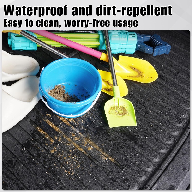 - High-quality material: The trunk mats are made of high-quality TPE material, which is eco-friendly and durable, effectively protecting vehicle trunk from damages caused by spills and other stains from liquid items. With a 2-in-1 design, the seat back and rear cargo area seamlessly connect, and even when the seats are folded down, the mat will still stay in place without movement.