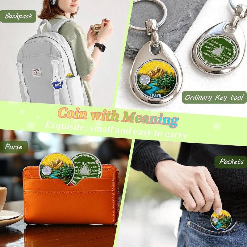 Original Design: The inspiration for this sobriety coin comes from nature, where trees symbolize the continuity of life, rivers represent calmness and exploration, and mountains signify the glory of success. It implies that on the journey to sobriety, we continuously grow, explore, and ultimately achieve brilliant success.