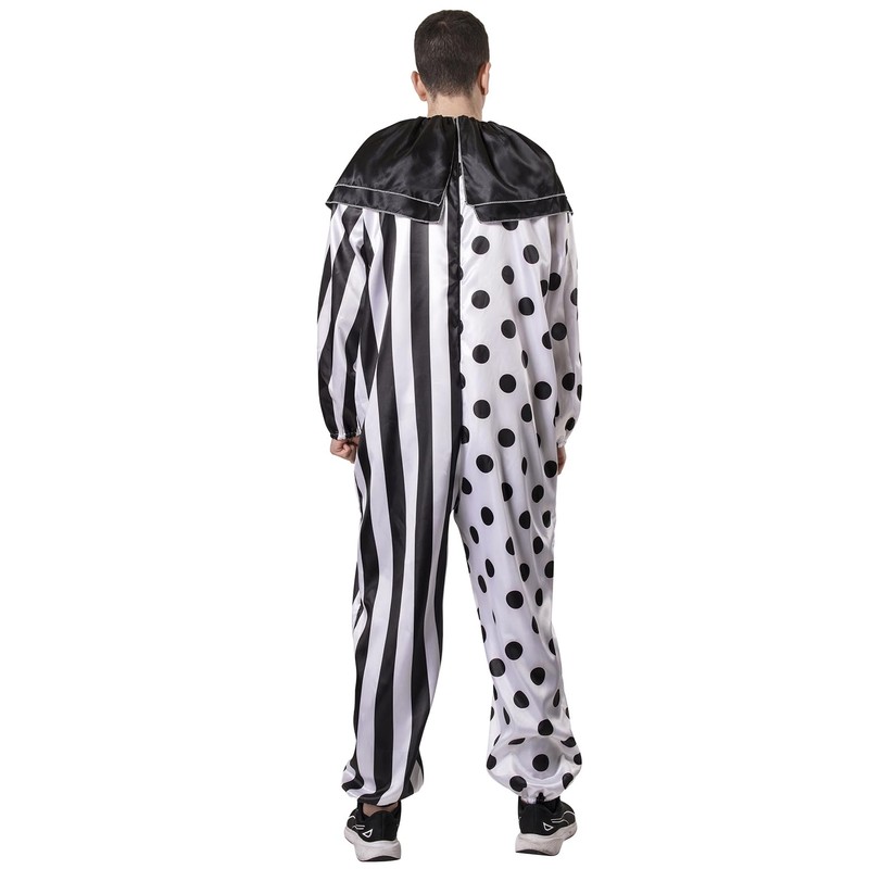 Jovial Jester Clown Costume - Multi-Color Dotted Jumpsuit with Ruffles for Halloween, Christmas & Carnival (Black-White, M)