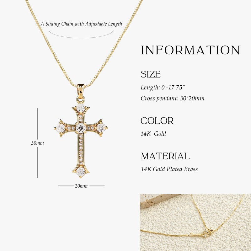 Jovialpixie Dainty Gold Cross Pendant Necklace for Women - 14K Plated with Sparkling CZ Gems, Adjustable Chain, Ideal Gift for Her (Christmas/Baptism)