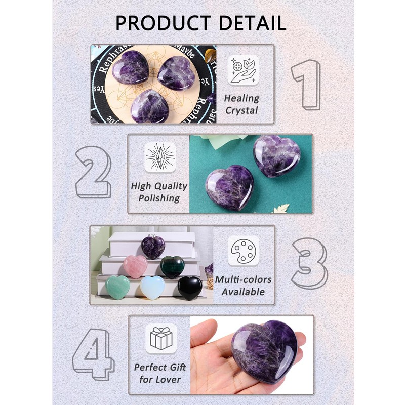 This heart shape crystals (palm stones,meditation stones,pocket stone) are smooth and polished, due to the nature of gemstones, carvings may slightly vary in texture color, size and shape.