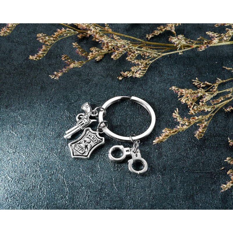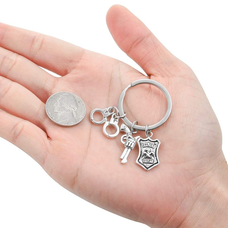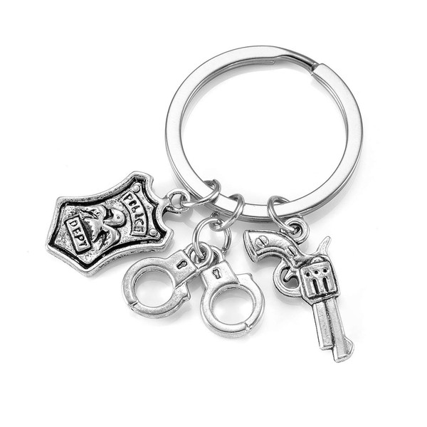 Jovivi Alloy Keyring with Handcuffs Piston Shield Pendant Key Ring Keychain Police Gift, silver