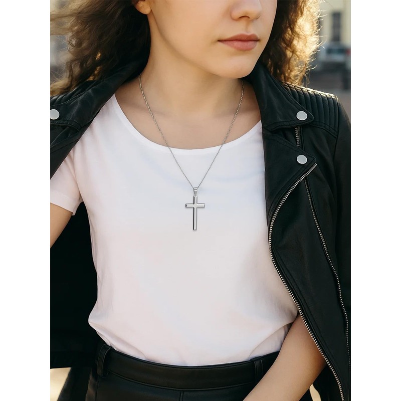 - Silver Cross Necklace Material:The Mens cross necklace Made of stainless steel cross pendant high 4.8cm x wide 2.5cm (1.89in x 0.98in), is rust, fade, water, and sweat resistant, making it extremely durable and strong. Hypoallergenic and nickel-free. 2cm thicknecss,24"inches(60cm) Solid box chain necklace length,make it suitable for most men and women, allowing you to effortlessly incorporate it into your everyday attire.