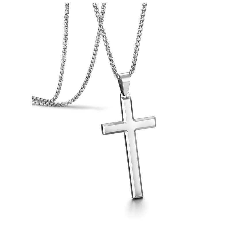 - Mens Necklace for Men:Men's Cross Necklace feature a Stainless steel silver cross pendant with Box Chain necklace.Classic simple and fashionable design,the cross necklace is suitable for daily wear by men and women.Mens Necklace Mens Cross Chain Jewellery Gifts for Men boys Dad Boyfriend Husband son Birthday Christmas gifts
