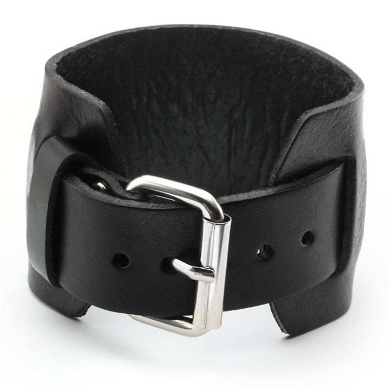 - Men's black Leather Cuff Bracelet, Leather Wrist Band Wristband for women
