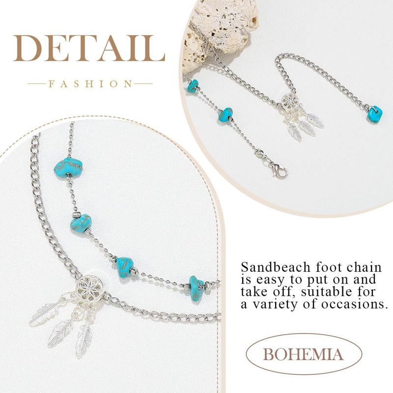 Jovono Boho Turquoise Silver Layered Dreamcatcher Anklet Beach Adjustable Anklet Jewelry for Women Girls
