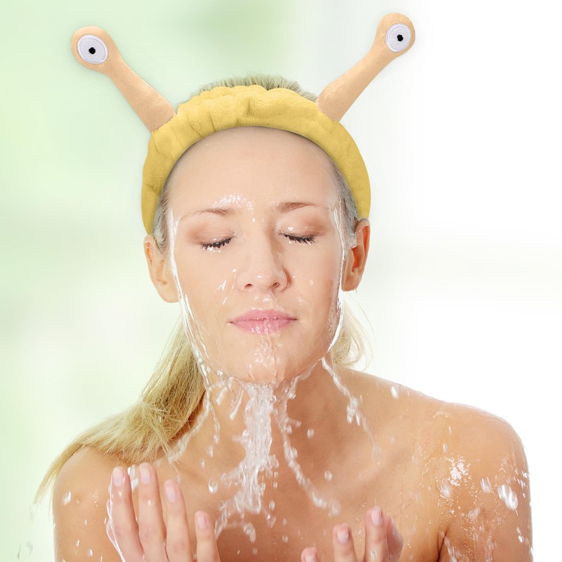Jowmoy Cute yellow Snail Headband, to Wash Face for Women Makeup Shower Spa Headband