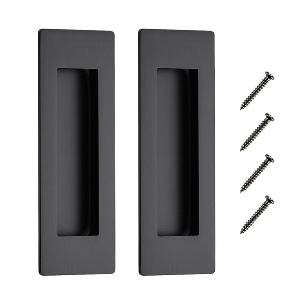 JOY DECOR 2 Pack Pocket Door Handles, 5.9" Rectangular Recessed Pulls for Sliding Closet and Barn Doors, Black Flush Finger Pulls