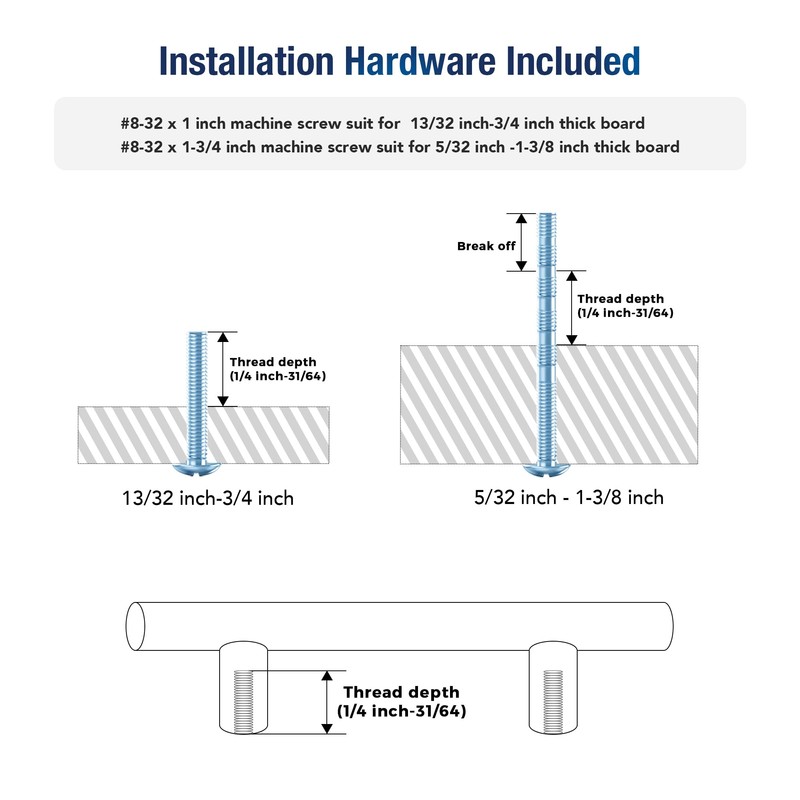 - Easy Installation: Our brushed nickel handles offer two sizes (1" and 1-3/4") of M8-32 metric size machine screws. They fit most cabinets and are easy to install