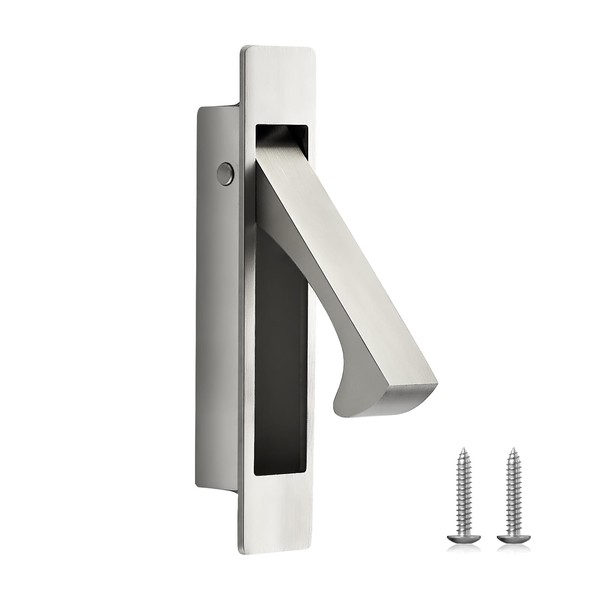 JOY DECOR Pocket Door Pull Handle, Edge Pull, Satin Nickel Flush Mount for Sliding Doors (1 Pack)