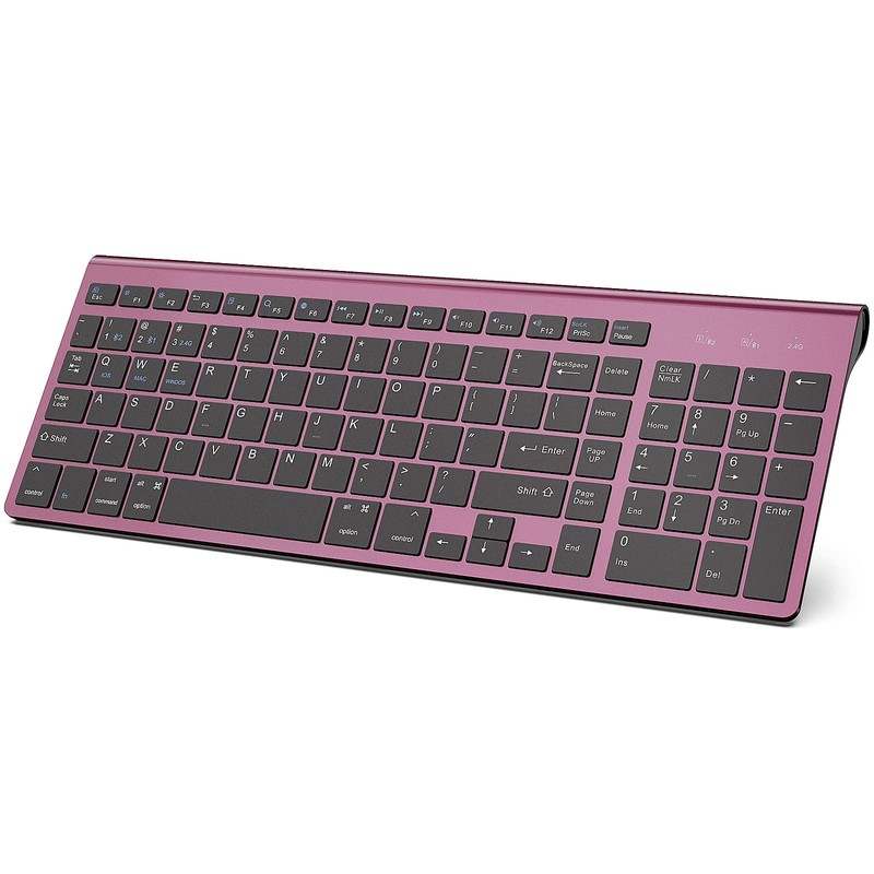 JOYACCESS J Teclado Bluetooth Multi Dispositivo (2.4G+BT3.0+BT5.0) Inglés QWERTY Teclado inalámbrico Bluetooth Compatible con iMac/Mac, Laptop, Android, Windows-Vino Rojo