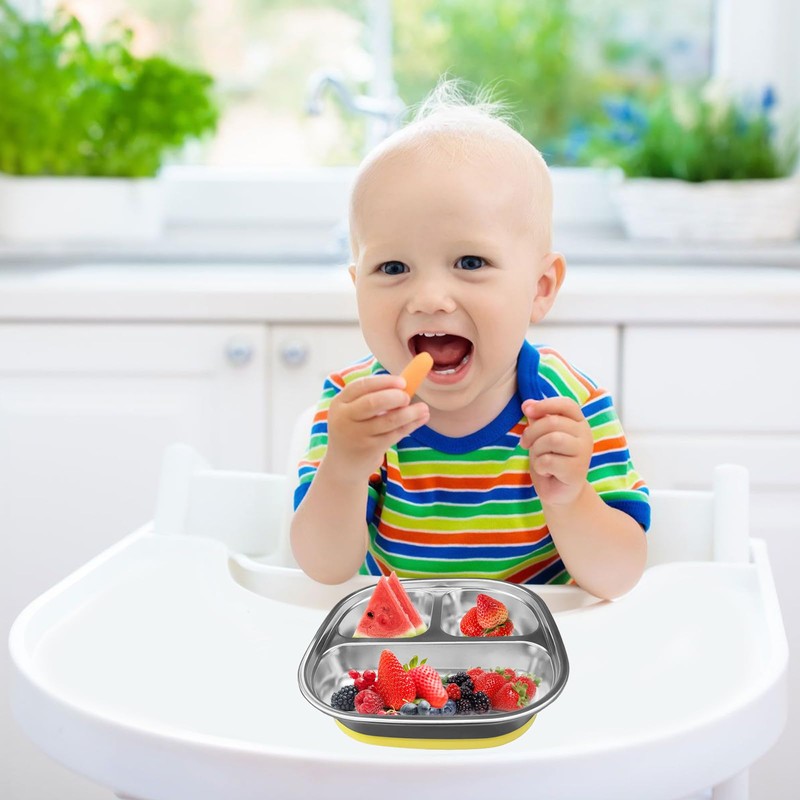 - Partitioned Design: The children's divided plate features three separate sections to effectively separate different foods and prevent flavor mixing. This helps cultivate healthy eating habits for kids, ensuring a balanced diet, making it perfect for picky eaters, and promoting easier self-feeding.