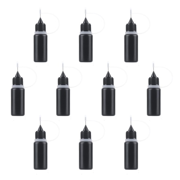 Joyangy 10-Pack 10ml Precision Tip Applicator Bottles, Black Plastic Squeeze Bottles with Metal Needle Tips for Glue/Paint/Epoxy, DIY Craft & Model Making