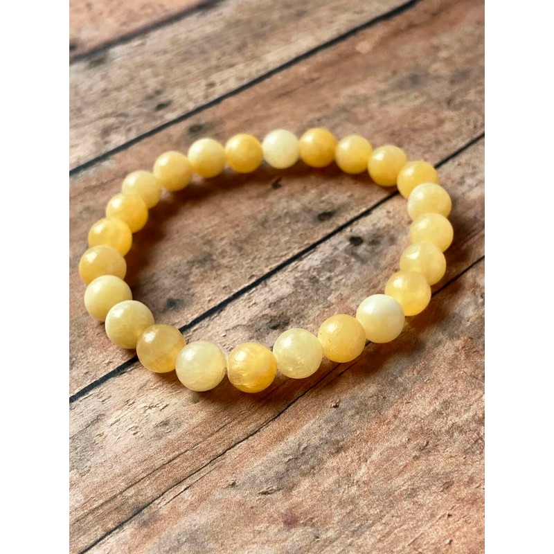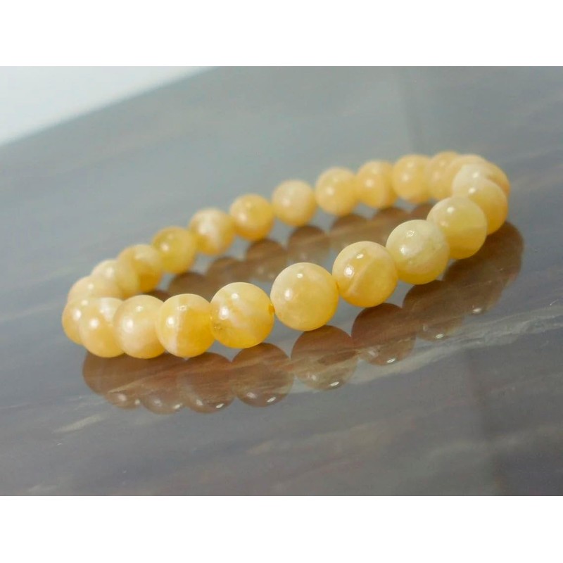 Joyas Minerales Bracelet made from 100% authentic natural stones, elastic bracelet with 6 mm or 8 mm beads, size 18.5 cm, jewellery box included, 8 mm, Stone, Honey Calcite