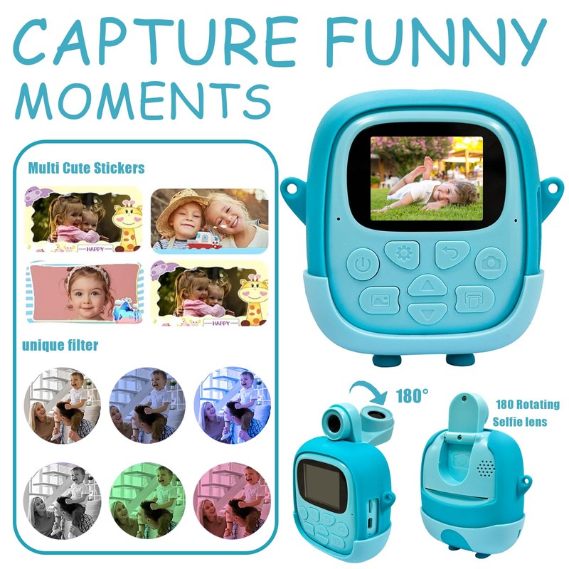 - Multi-function digital camera for kids: This mini camera features instant print, 2.0 inch large screen, 180° selfie flip lens,1080P video, 6x digital zoom, continuous shooting, games, mp3. This can meet the different needs of children. It is a good choice to accompany children to grow up happily. To bring you and your family a beautiful moment.