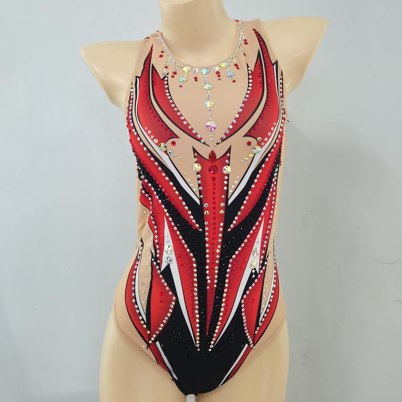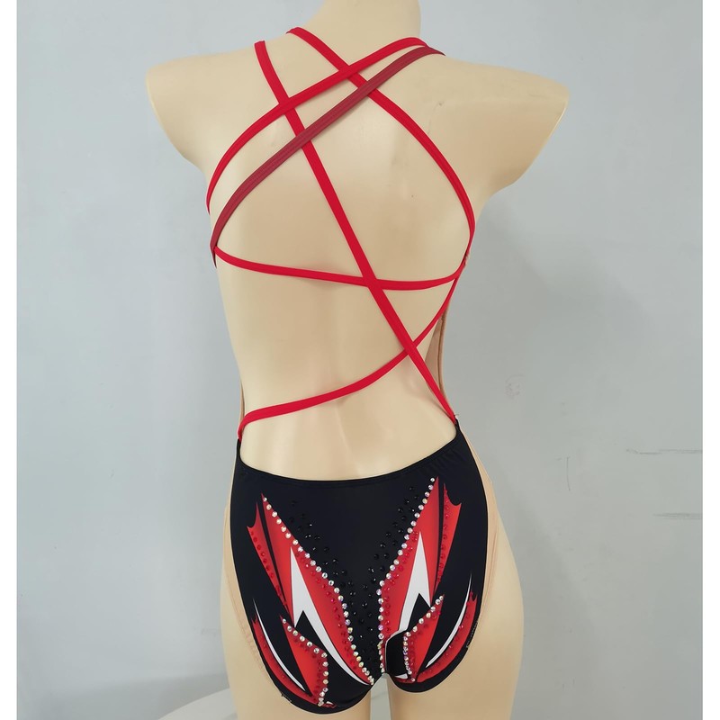 • 3. Make a splash in the synchronized swimming world with JoyCan's red patterned swimsuit. The chlorine-resistant material and adjustable straps provide a comfortable and secure fit for all your aquatic performances.