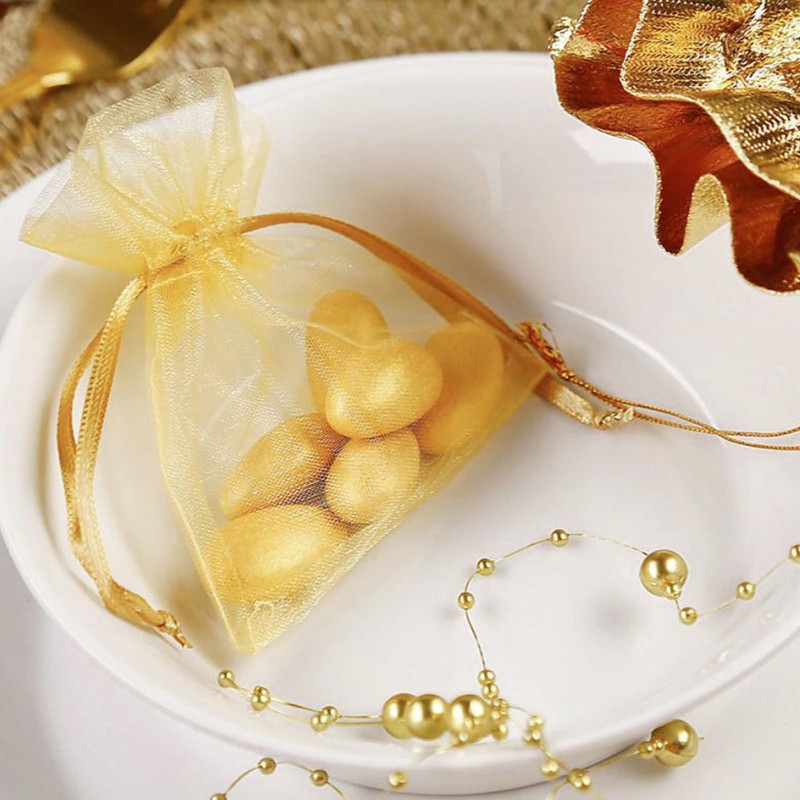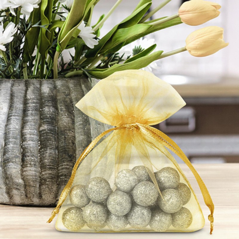 - [Multi-Purpose Organza Bag] - Our gold organza bag has three sizes to choose from, it can be used to hold all kinds of gifts, wedding gifts, jewelry, rings, necklaces, earrings, dried flowers, tea leaves, handmade soaps, small toys, stationery, cosmetics and other items, and it can also be used to make scented bags. It can also be recycled.