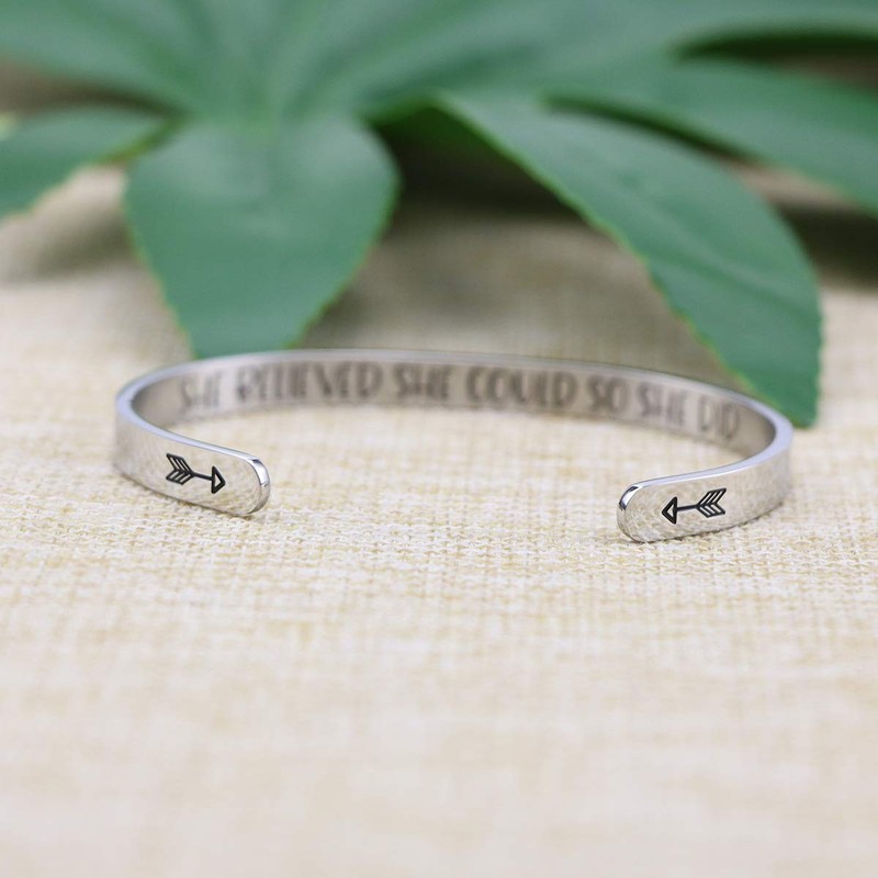 JoycuFF She Believed She Could Bracelets for Women Inspirational Jewelry Friend Encouragement Empowerment Mantra Cuff Bangle