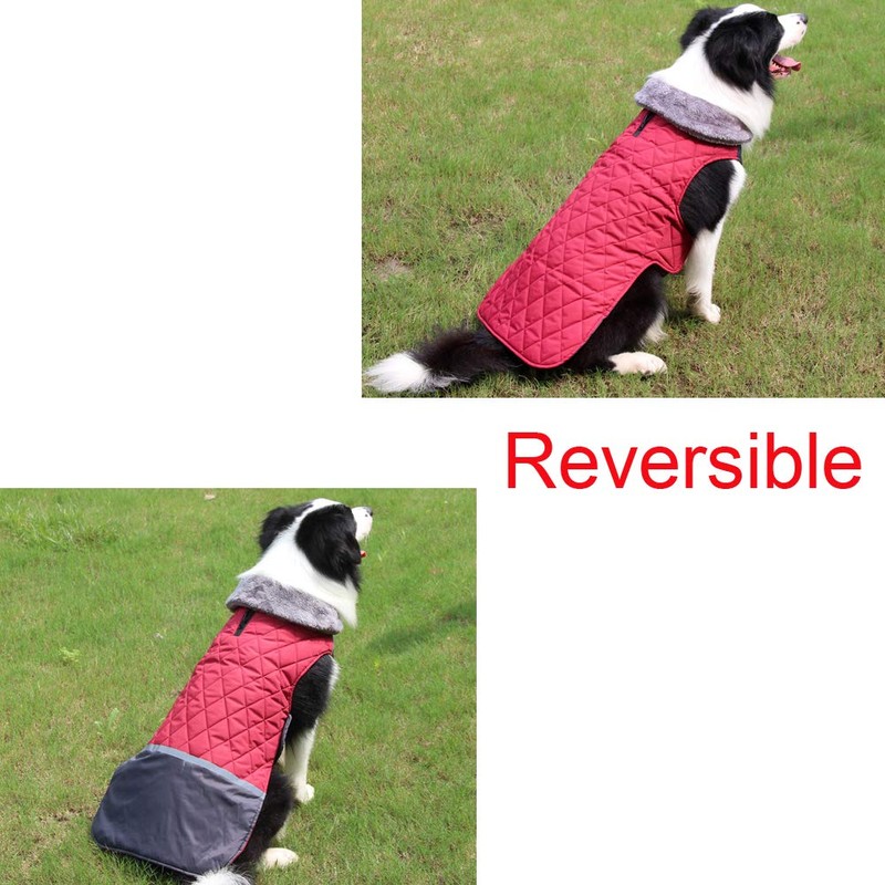 JoyDaog Fleece Collar Reversible Dog Coats for Extra Large Dogs Waterproof Warm Doggie Jacket for Cold Winter,Red XXXL