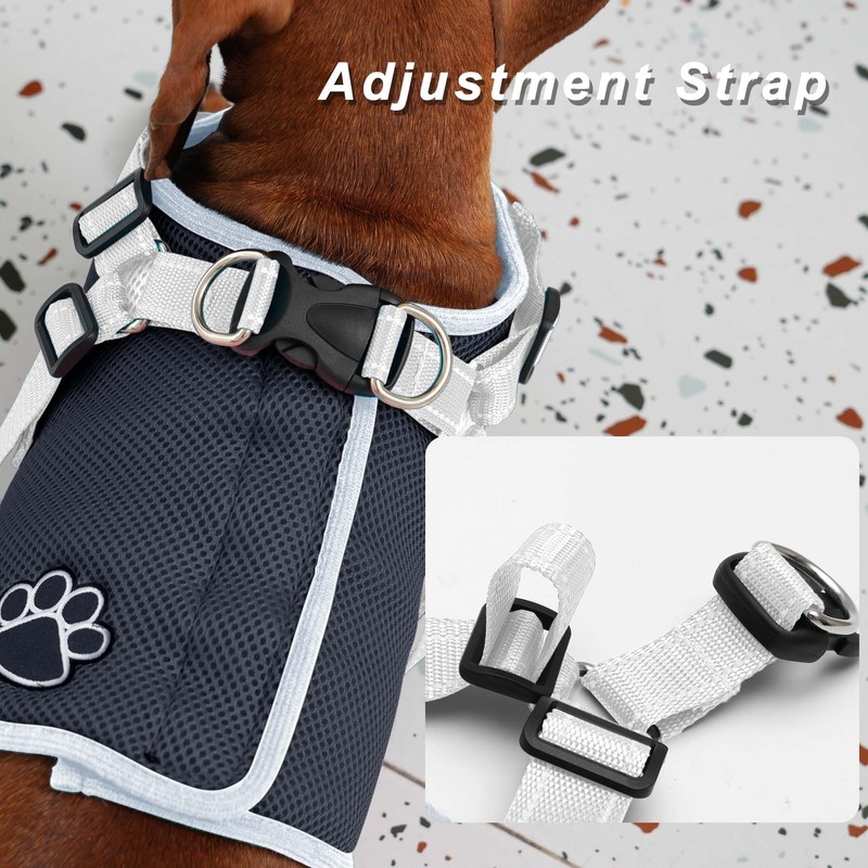 • Fashion Jacket Style Dog harness with a wider range disperse force,nice fully body support. Soft breathable cushion,comfy;Breathable mesh fabric.