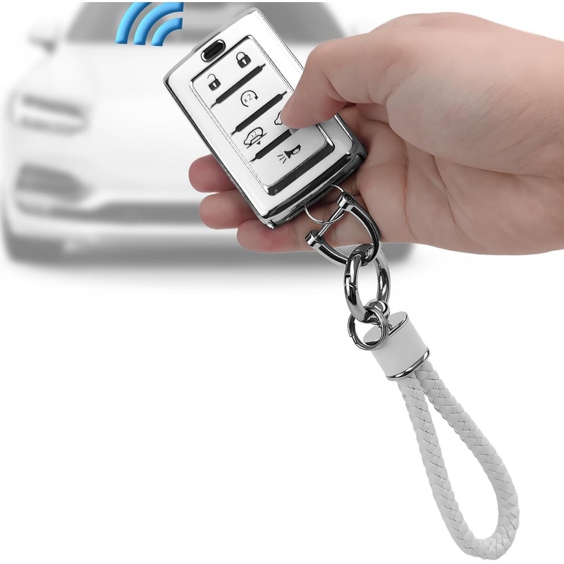 Material: Keychain Made With Premium Leather and Metal Key Cover Made with premium TPU. Super thin, soft, trending looking and pretty durable. Make your key fob look new and premium