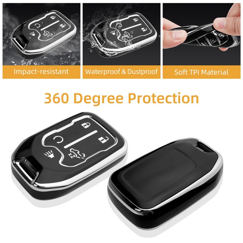 JOYEAR Key Fob Cover, Silver-black, For Chevy/GMC-C/5 Buttons