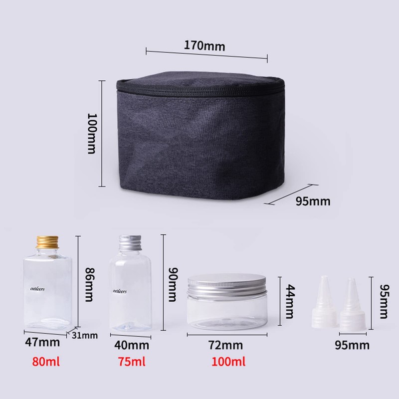 Package Content: 1 storage bag /6 clear plastic bottles(3 different size)