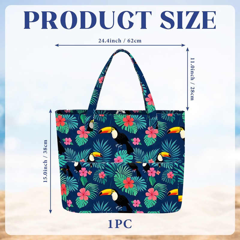 Joyesplay Large Beach Bag, XXL Family with Zip, Women's Waterproof Sandproof Beach Bag, Summer Bag, Swimming Bag for Beach, Travel, Shopping, Pool, Purple Toucan Bird