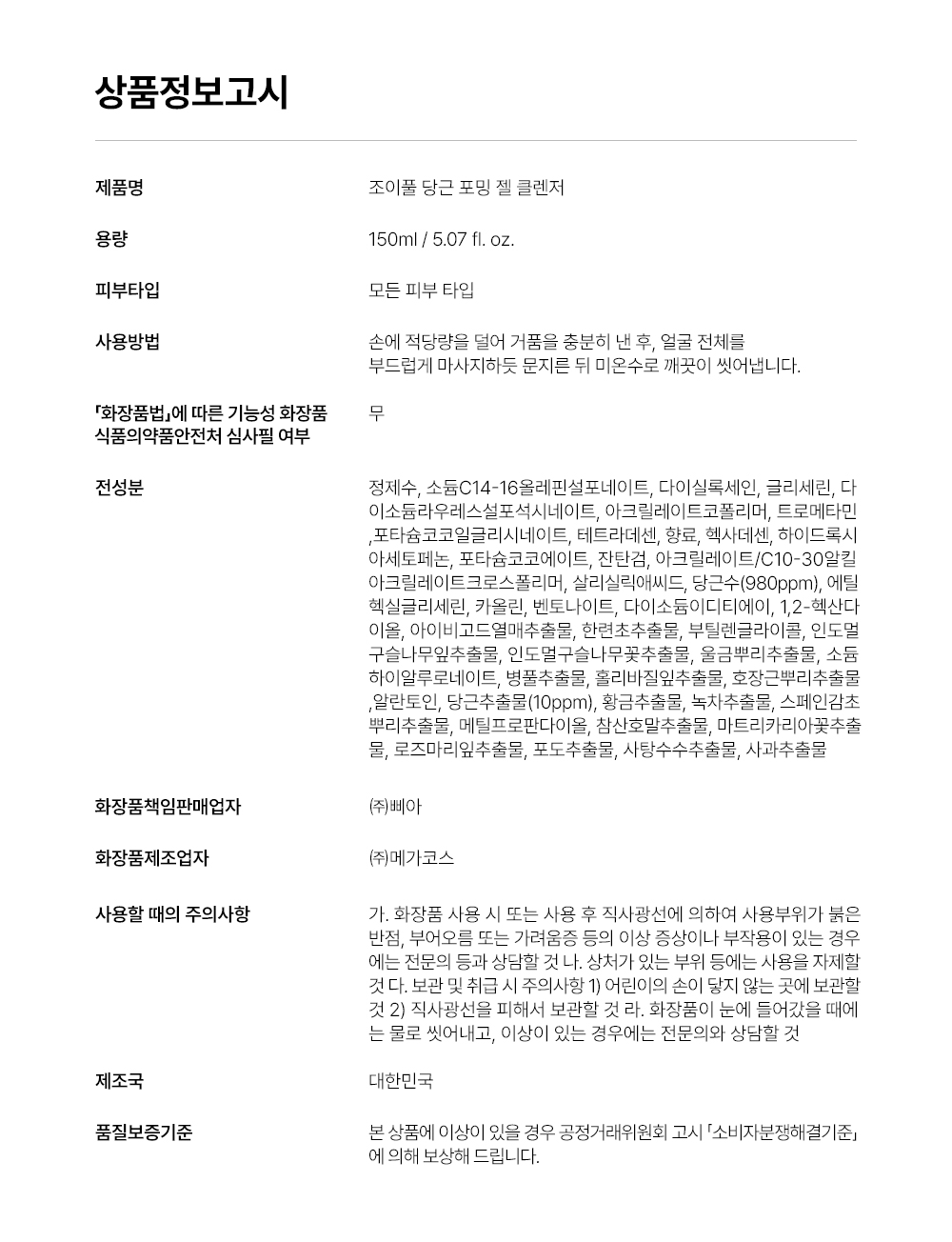 조이풀 당근 포밍 젤 클렌저 150ml