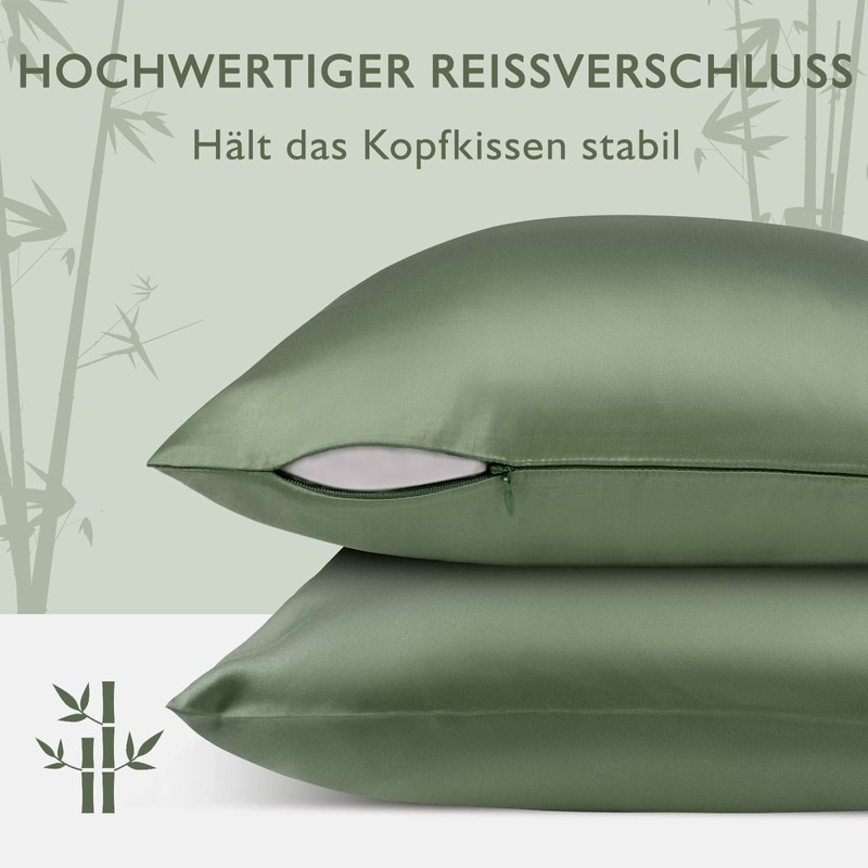 Joyhabit Bamboo Pillowcase 80 x 80 cm, 100% Pure Natural, Soft and Silky for Baby, Vegan and Environmentalists, Pack of 2, Moss Green