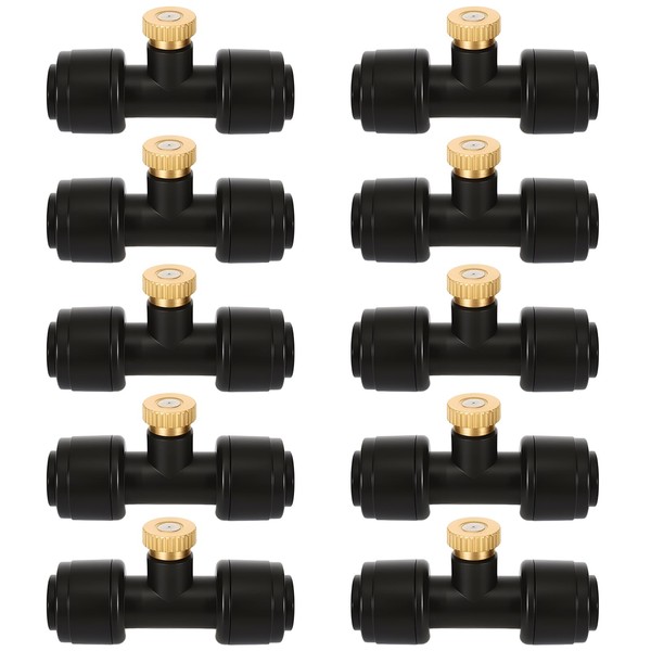 Joyhalo 10 Pack Brass Misting Nozzles,1/4 Inch Mister Replacement Nozzle Tee for Outdoor Cooling Misting System