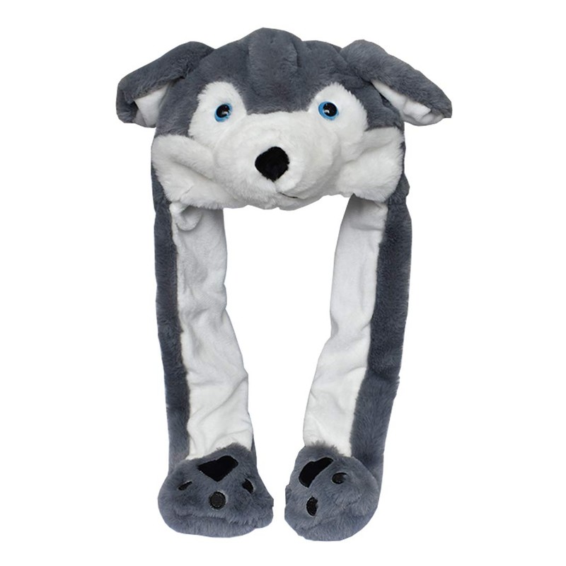 JOYHY Children's Adult Plush Hat Ear Moving Ear Flap Hat with Paw, Grey Wolf