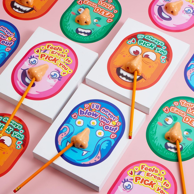- UNIQUE DESIGN: Our Funny nose Sharpener includes 28 pcs of Pencil & Pencil sharpeners. It has 4 designs and 4 colours for boys & girls Valentine`s card with cute and humorous messages that perfectly fits the funny nose sharpener.Doesnt come with glue dots