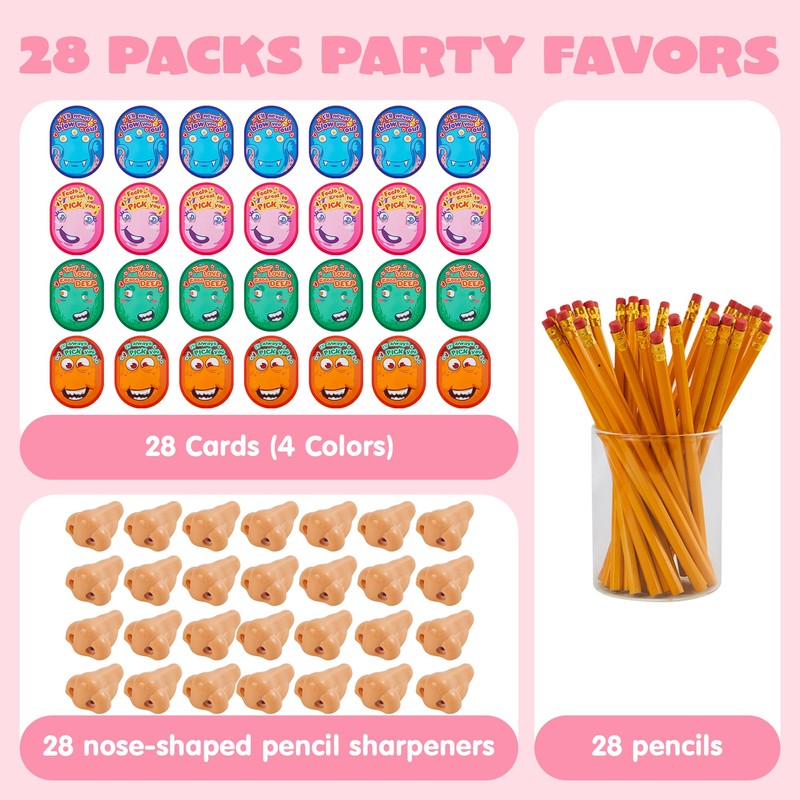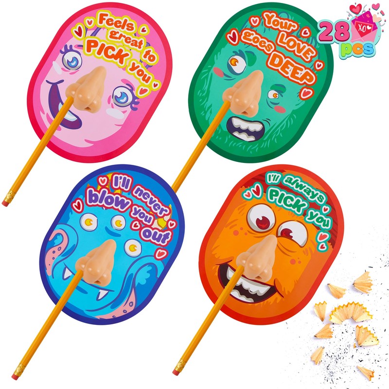 JOYIN 28 pcs I Pick Your Nose Pencil and Sharpener with Valentines Greeting Cards for Kids Party Favor, Classroom Exchange Prizes