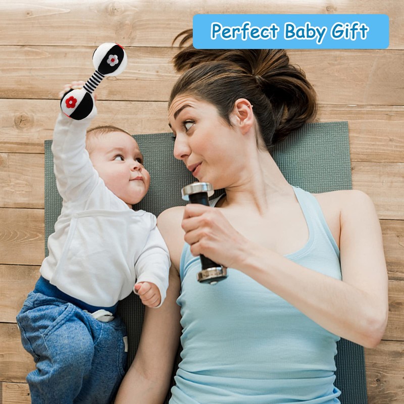 JoyLife Baby Rattle Toys, Black and White Baby Rattle, High Contrast Sensory Newborn Toys, Soft Rattle Toys Gift for 0 3 6 9 12 Months Boys and Girls - Maracas & Dumbbells