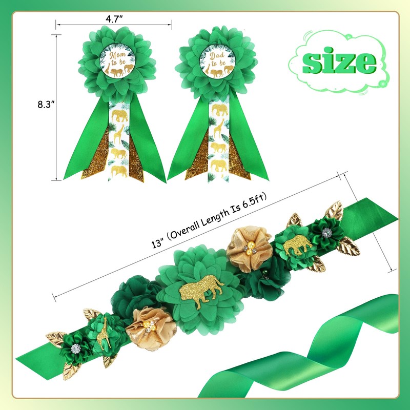 - Wide Applications: This green safari animal maternity sash and corsage pins set is suitable as a gift for expectant parents. The mommy and daddy wear maternity sash at baby shower. The baby shower decorations will make a family memory together for everyone.