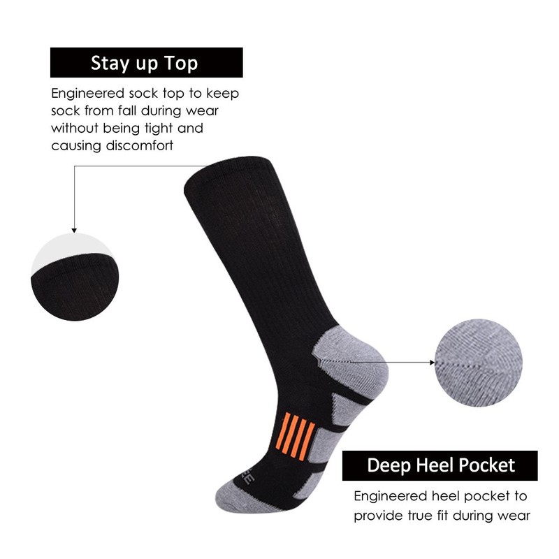 • PERFORMANCE: Plush under sole cushioning for extra protection and longer wear.Reinforced heel and toe for enhanced durability."Y" shaped deep heel pocket ensures that the sock fits the contours of the foot so perfectly and WILL NOT SLIDE DOWN!Arch elastic provides added support and keeps the socks firm on the feet when you wear.