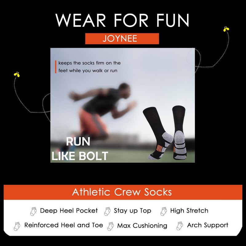 JOYNÉE Mens 6 Pack Athletic Cushion Crew Socks Performance Running Socks,Blac...