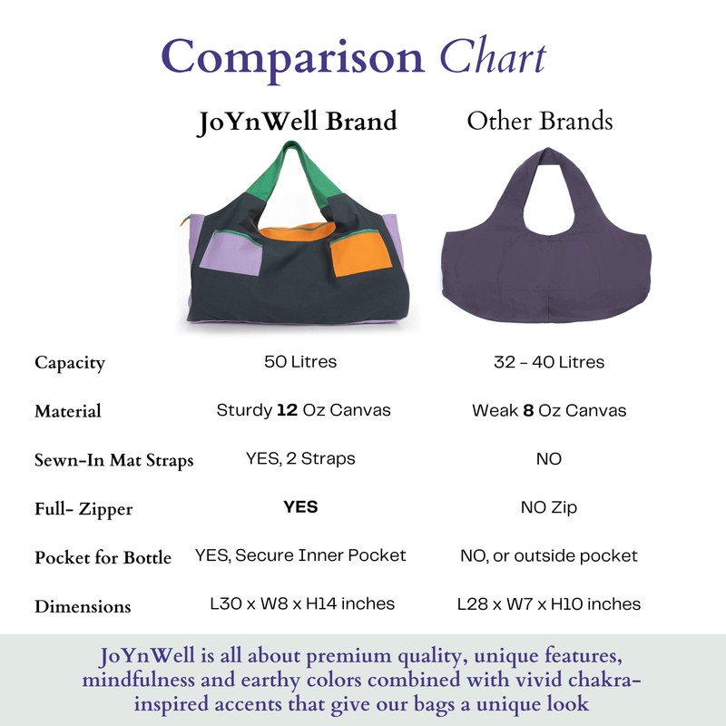 - JoYnWell Yoga Bags are well designed and beautifully crafted to fit all of your yoga gear, XL thick yoga mat yoga mats, yoga blocks, bolsters, meditation pillow, towel, bottle and blanket