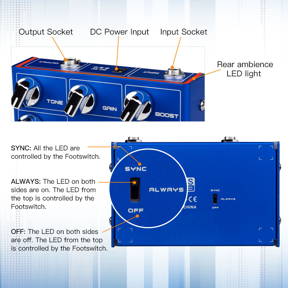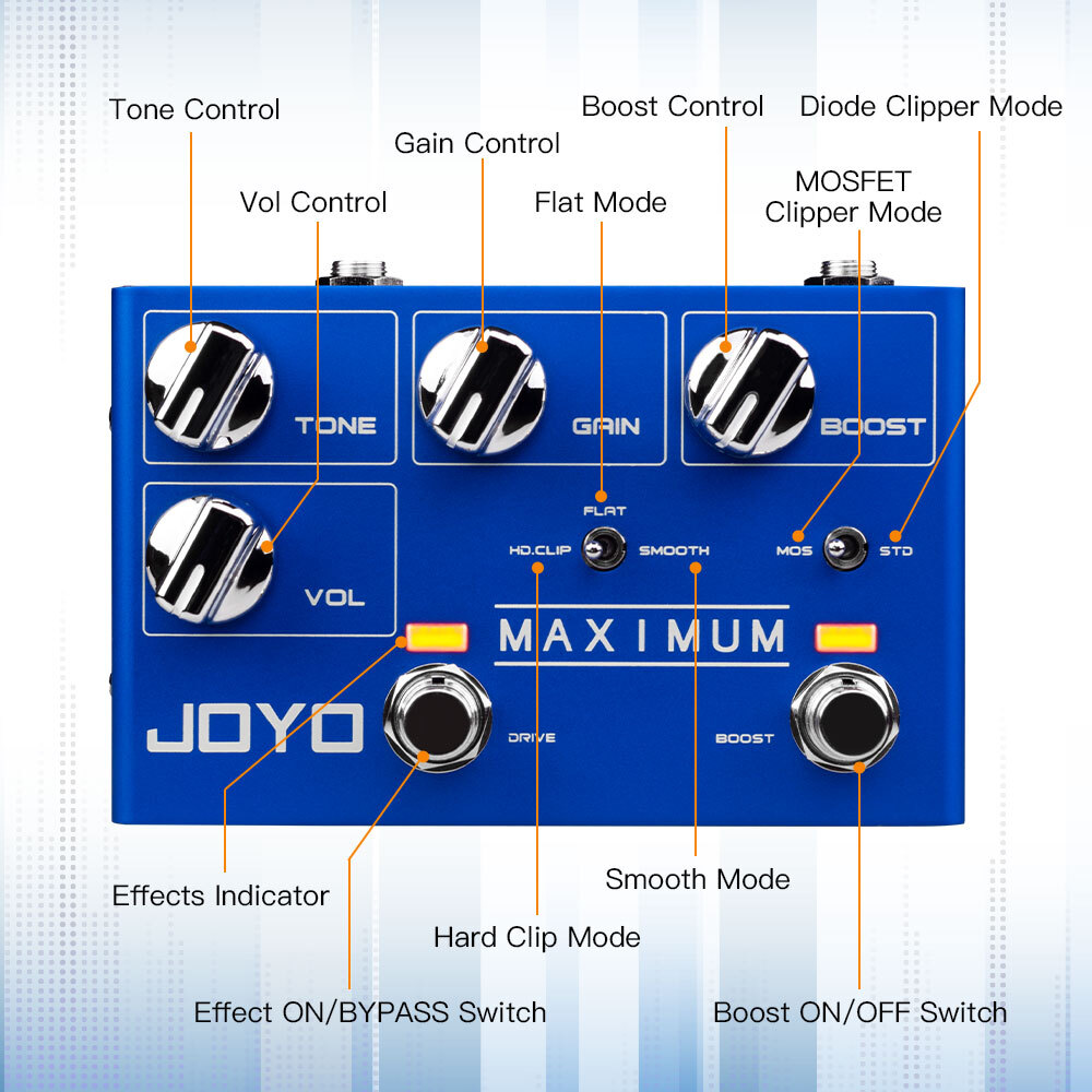 JOYO Overdrive Boost Guitar Pedal 6 Modes Pure Clean True Bypass For Guitar Bass