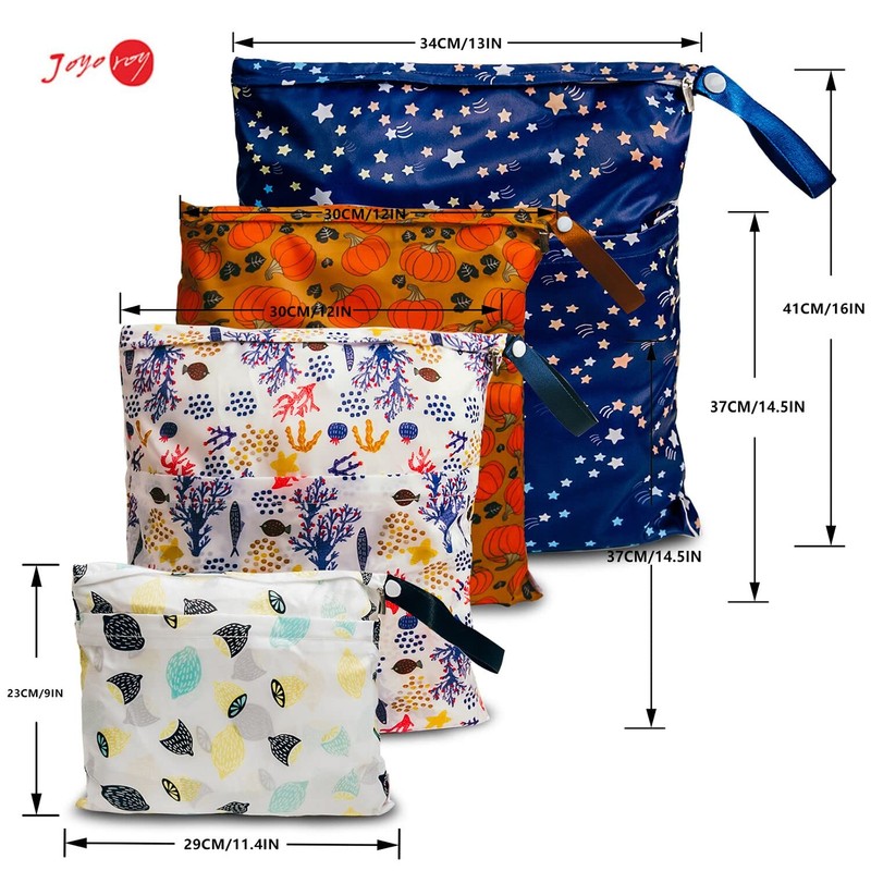 - 😘DRY AND WET SEPARATION, MULTI-FUNCTION -- Four Different Sizes: 1 Large (13 X 16 In), 2 Medium (12 X 14.5 In) And 1 Small (9x11.4 In). Multiple Sizes To Meet Your Different Needs. Our Nappy Bag Has Two Zippered Compartments. The Wet Bags Are Sewn Sealed, Non-Absorbent And Non-Leak! So This Wet Bags Is Multifunctional And Can Be Used As A Wet Bag For Cloth Nappies, Wet Bags For Swimming, Wet Clothes Bag, Hanging Bag, Baby Travel Accessories, Yoga Gym Bag, Makeup Bag, Storage Bag And More