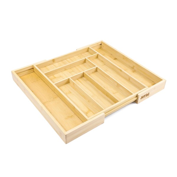 JOYOJ Bamboo Kitchen Drawer Organizer for Utensils Holder, Cutlery Tray and Silverware Organizer, Drawer Dividers Organizer for Silverware, Flatware, Knives in Kitchen (Natural, Large)