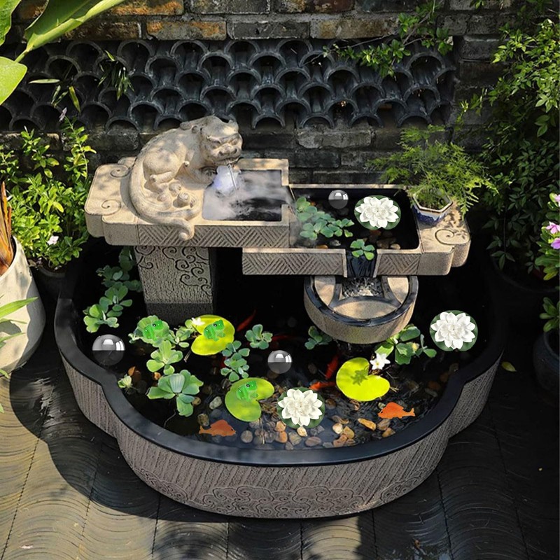 - Versatile: the sculpture is ideal for use as a garden pond decoration and as a gift idea for friends, family and garden lovers. The frog along with the floating ball and lotus, is very suitable for small garden ponds, fountains, fountains, mini ponds, fish ponds, flower pots, etc.