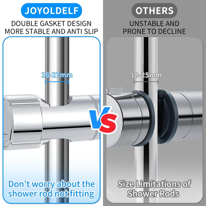 Joyoldelf Universal Hand Shower Holder, Adjustable Shower Holder, 360° Rotatable Shower Holder for Slide Bar 16-27 mm Outer Diameter, ABS Grade Plastic, Chrome-Plated