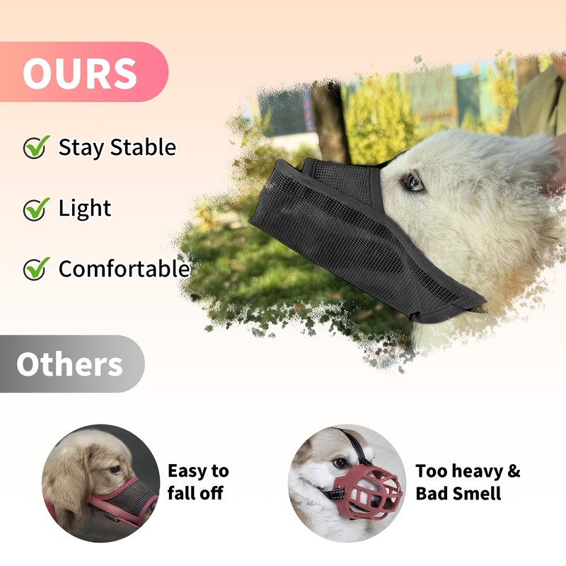 - Upgraded Dog Muzzle: Our dog muzzle is designed specifically for dogs with long snouts (please note that it's not suitable for any dogs with short snouts).In addition, we have added an additional strap tied to the forehead to better secure and prevent it from falling off.