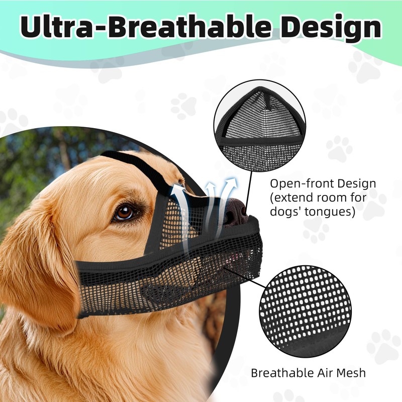 • Upgraded Dog Muzzle: Our dog muzzle is designed specifically for dogs with long snouts (please note that it's not suitable for any dogs with short snouts).In addition, we have added an additional strap tied to the forehead to better secure and prevent it from falling off.