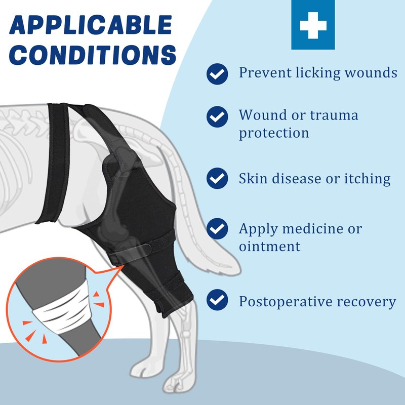 - Highly Effective Lick Prevention:Securely wraps around hind legs, knees, and thighs to block licking/biting—ideal for post-TPLO, ACL surgery, wounds, or skin conditions. A proven alternative to bulky cones, inflatable collars, and "donut" protectors that often fail.