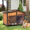 • Multi-functional 360° Rotating Dog Bowls: This dog house is equipped with unique 360° rotating dog bowls, making it convenient for both indoor and outdoor use. Whether inside or outside the dog house, you can easily adjust the position of the bowls to ensure your pet can comfortably eat and drink at all times.