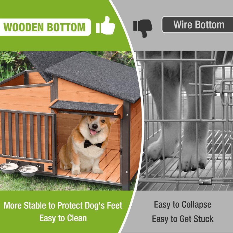 • Safe and Comfortable Living Environment: The dog house has a wooden bottom, which is more stable than a wire bottom, providing better protection for your pet's feet and preventing injuries. The overall design is spacious and comfortable, offering your pet a safe and cozy living environment.